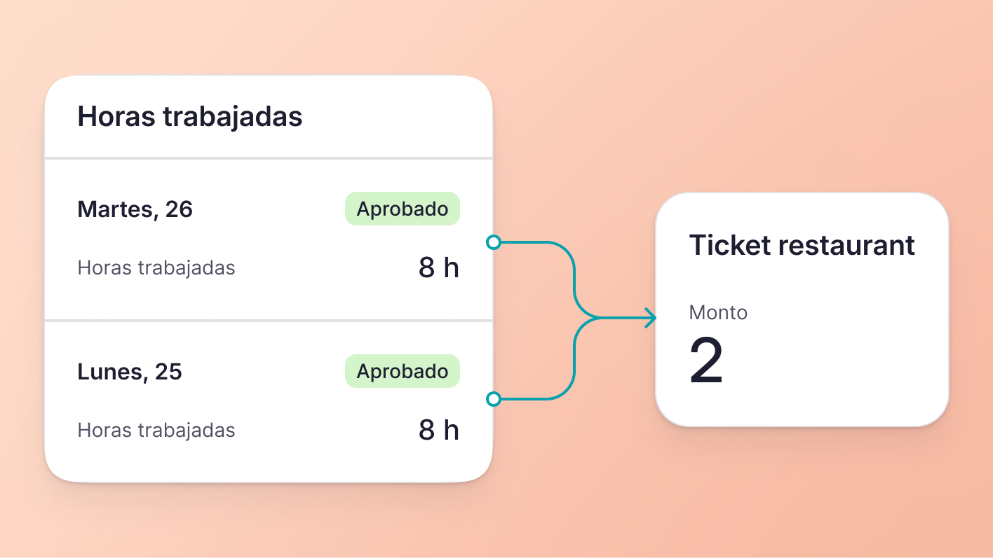 Define las reglas de los vales de comida según días completos, medios días o las horas mínimas trabajadas, de acuerdo con la política de compensación de tu empresa.